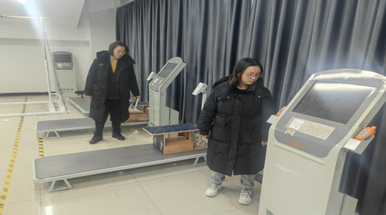 在国家学生体质健康标准测试室,仔细检查肺活量测试仪、立定跳远测距仪、身高体重秤等仪器的运行状态,实地查看测试场地地面平整度,确保场地无安全隐患;要求明确寒假期间设备看管责任,做好防潮、防尘、防盗措施,确保测试室各项设施处于安全可控状态。